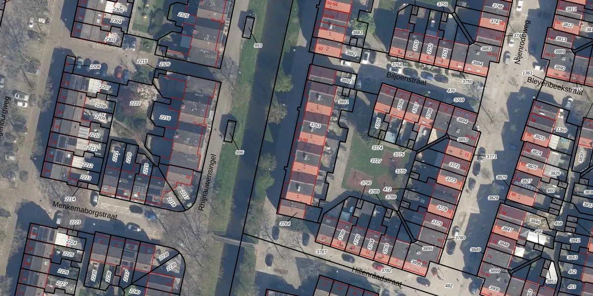 Het perceel waarop Rhijnauwensingel 78 staat heeft een oppervlakte van 632 m². Dit is een groot perceel. De perceeloppervlakte wordt geregistreerd door het Kadaster. Gedetailleerde informatie over de maten van dit perceel kunt u vinden in het rapport Kadastrale kaart met maatvoering van Rhijnauwensingel 78.