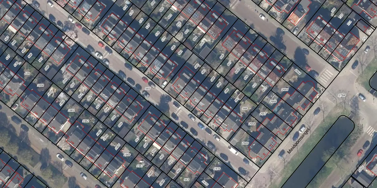 Gebruik de zoekbalk of klik op een perceel voor informatie over de adressen binnen dit perceel.