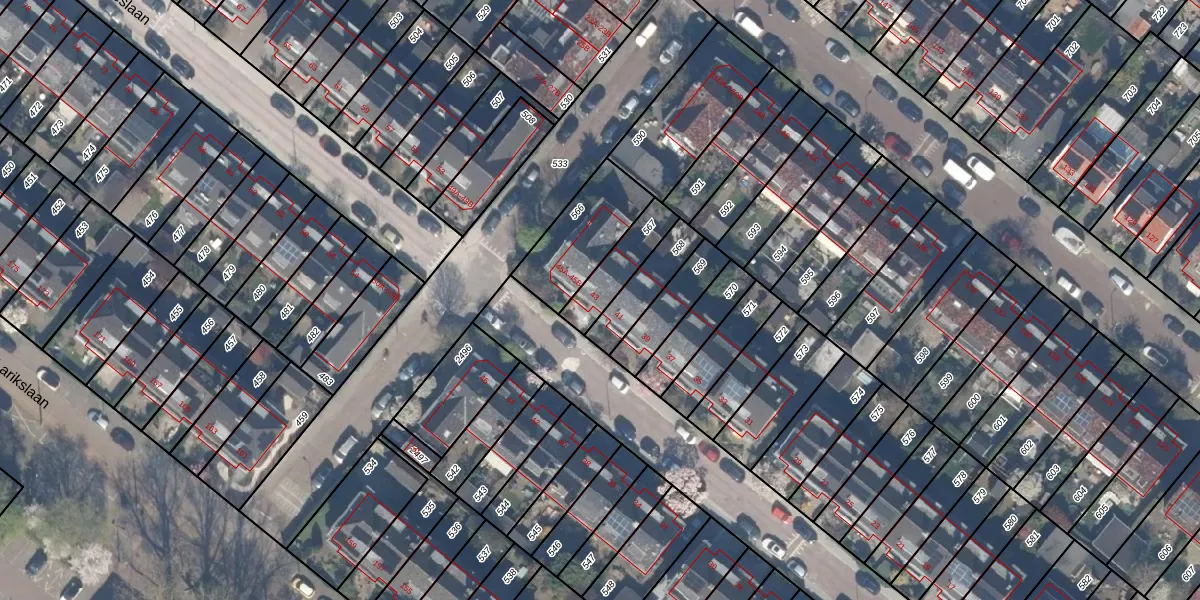Gebruik de zoekbalk of klik op een perceel voor informatie over de adressen binnen dit perceel.