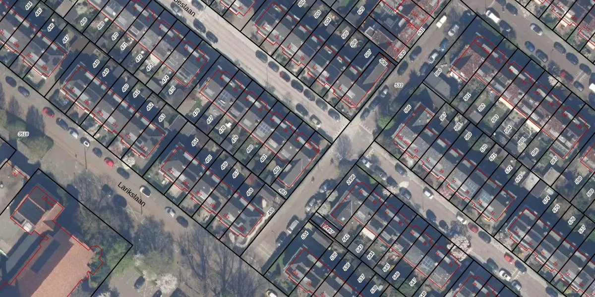 Gebruik de zoekbalk of klik op een perceel voor informatie over de adressen binnen dit perceel.