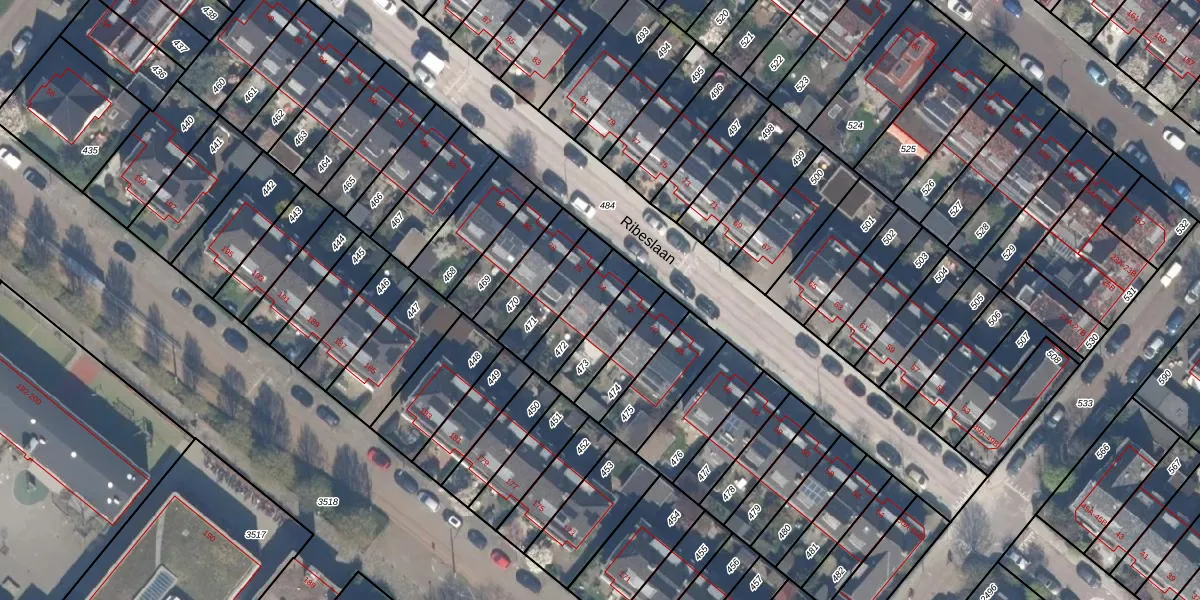 Gebruik de zoekbalk of klik op een perceel voor informatie over de adressen binnen dit perceel.