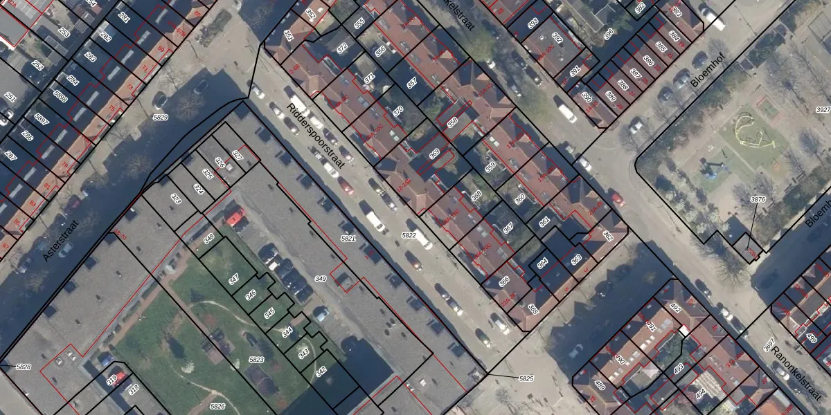 Ridderspoorstraat 16-B is gelegen op kadastraal perceel CLS00G369. Deze kadastrale aanduiding is uniek en wordt gebruikt door het Kadaster om eigendomsrechten en andere zakelijke rechten vast te leggen. Het perceel maakt onderdeel uit van de kadastrale gemeente Charlois.