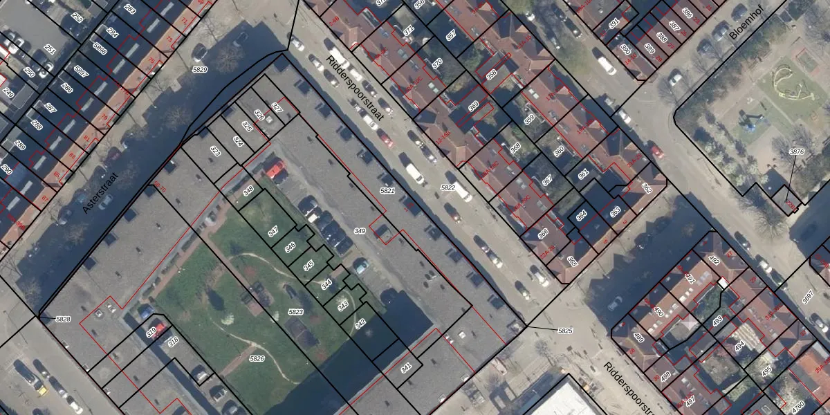 Ridderspoorstraat 21 is gelegen op kadastraal perceel CLS00G5821. Deze kadastrale aanduiding is uniek en wordt gebruikt door het Kadaster om eigendomsrechten en andere zakelijke rechten vast te leggen. Het perceel maakt onderdeel uit van de kadastrale gemeente Charlois.