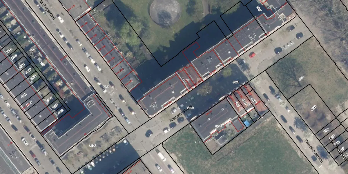 Het perceel waarop Riebeekstraat 37-B staat heeft een oppervlakte van 3054 m². Dit is een zeer groot perceel. De perceeloppervlakte wordt geregistreerd door het Kadaster. Gedetailleerde informatie over de maten van dit perceel kunt u vinden in het rapport Kadastrale kaart met maatvoering van Riebeekstraat 37-B.