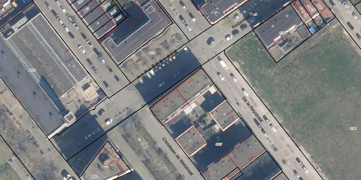 Riebeekstraat 40 is gelegen op kadastraal perceel CLS00D8307. Deze kadastrale aanduiding is uniek en wordt gebruikt door het Kadaster om eigendomsrechten en andere zakelijke rechten vast te leggen. Het perceel maakt onderdeel uit van de kadastrale gemeente Charlois.