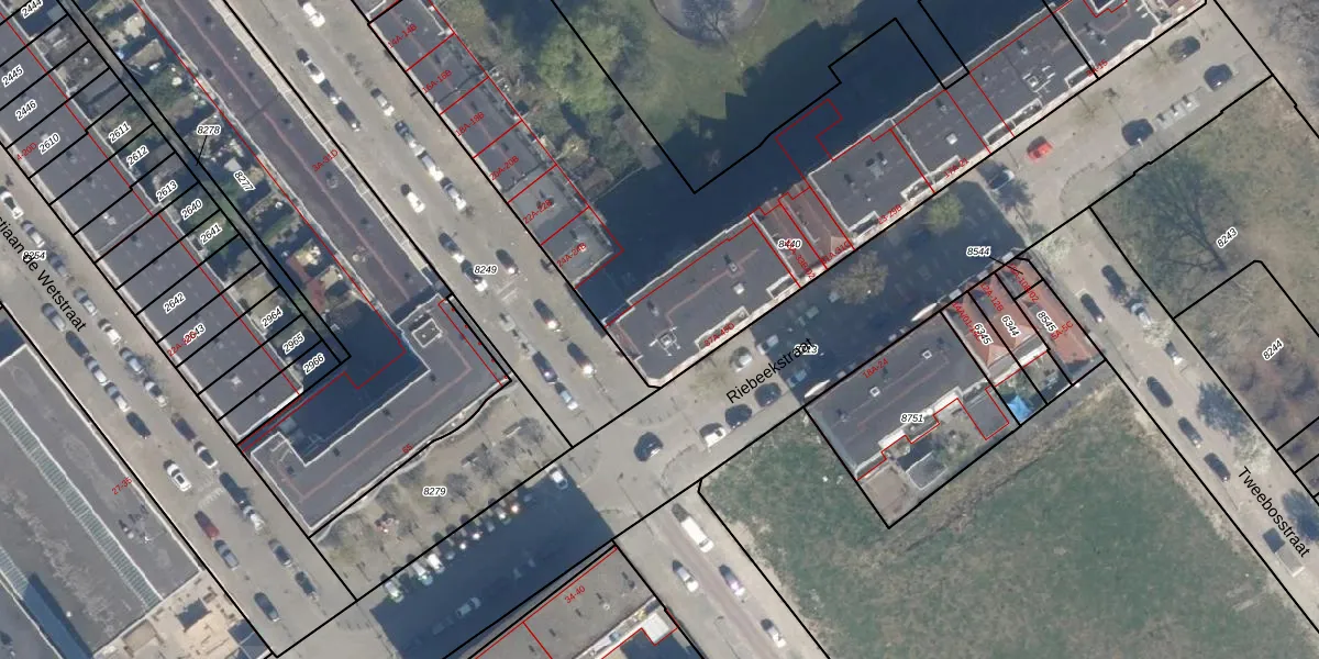 Het perceel waarop Riebeekstraat 45-D staat heeft een oppervlakte van 3054 m². Dit is een zeer groot perceel. De perceeloppervlakte wordt geregistreerd door het Kadaster. Gedetailleerde informatie over de maten van dit perceel kunt u vinden in het rapport Kadastrale kaart met maatvoering van Riebeekstraat 45-D.