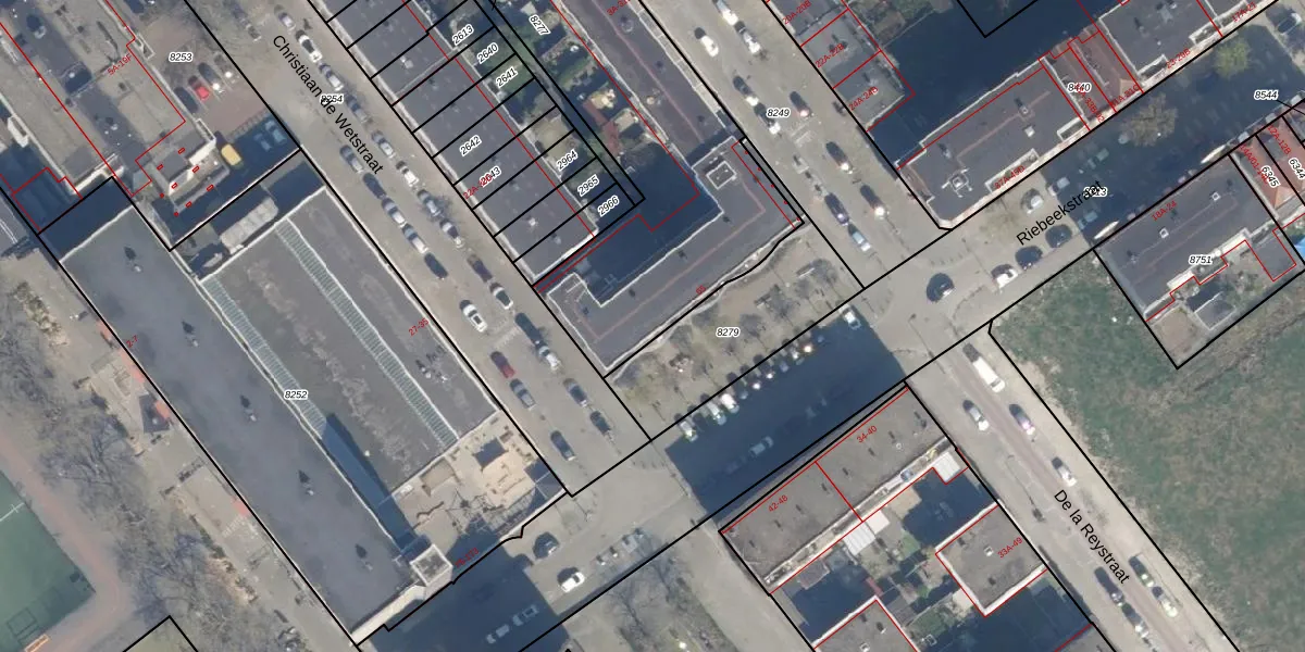 Het perceel waarop Riebeekstraat 65 staat heeft een oppervlakte van 2125 m². Dit is een zeer groot perceel. De perceeloppervlakte wordt geregistreerd door het Kadaster. Gedetailleerde informatie over de maten van dit perceel kunt u vinden in het rapport Kadastrale kaart met maatvoering van Riebeekstraat 65.