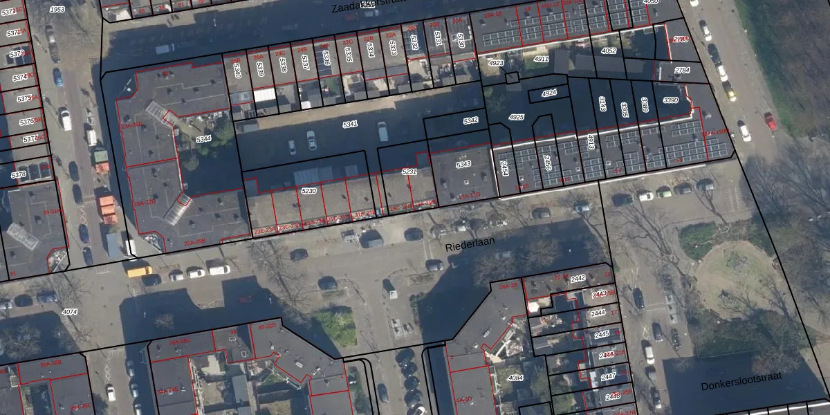 Riederlaan 19-B is gelegen op kadastraal perceel RTD05V5231. Deze kadastrale aanduiding is uniek en wordt gebruikt door het Kadaster om eigendomsrechten en andere zakelijke rechten vast te leggen. Het perceel maakt onderdeel uit van de kadastrale gemeente Rotterdam.