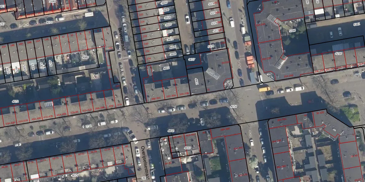 Het adres ligt op het perceel RTD05-V-4802, dat zich in de kadastrale gemeente Rotterdam bevindt. De gemiddelde perceelgrootte in Rotterdam is 1402,06 m². Dit perceel is kleiner: de perceeloppervlakte bedraagt 562 m². Het grootste perceel in de kadastrale gemeente is 36,8 ha. Het kleinste perceel heeft een oppervlakte van 0 m². Op het perceel zijn 7 adressen aanwezig. De huidige grenzen van het perceel zijn digitaal in de Basisregistratie Kadaster (BRK) geregistreerd op 18-04-2006.