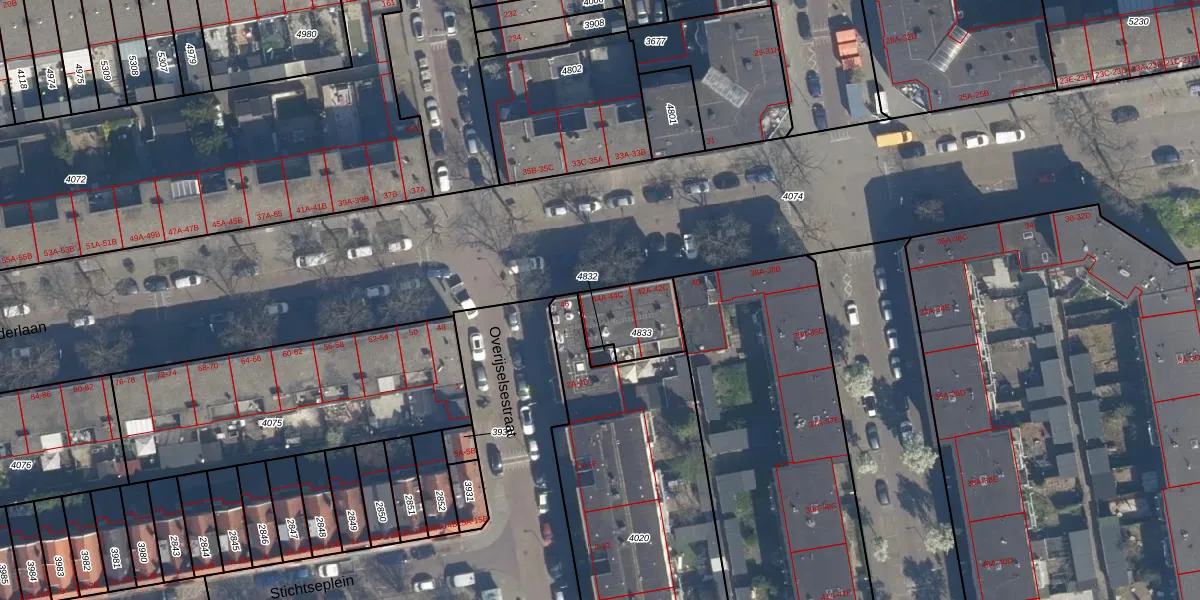 Het adres ligt op het perceel RTD05-V-4833, dat zich in de kadastrale gemeente Rotterdam bevindt. De gemiddelde perceelgrootte in Rotterdam is 1402,06 m². Dit perceel is kleiner: de perceeloppervlakte bedraagt 190 m². Het grootste perceel in de kadastrale gemeente is 36,8 ha. Het kleinste perceel heeft een oppervlakte van 0 m². Er zijn 6 adressen aanwezig op het perceel. De laatste wijziging in het de Basisregistratie Kadaster (BRK) was op 11-03-2011.