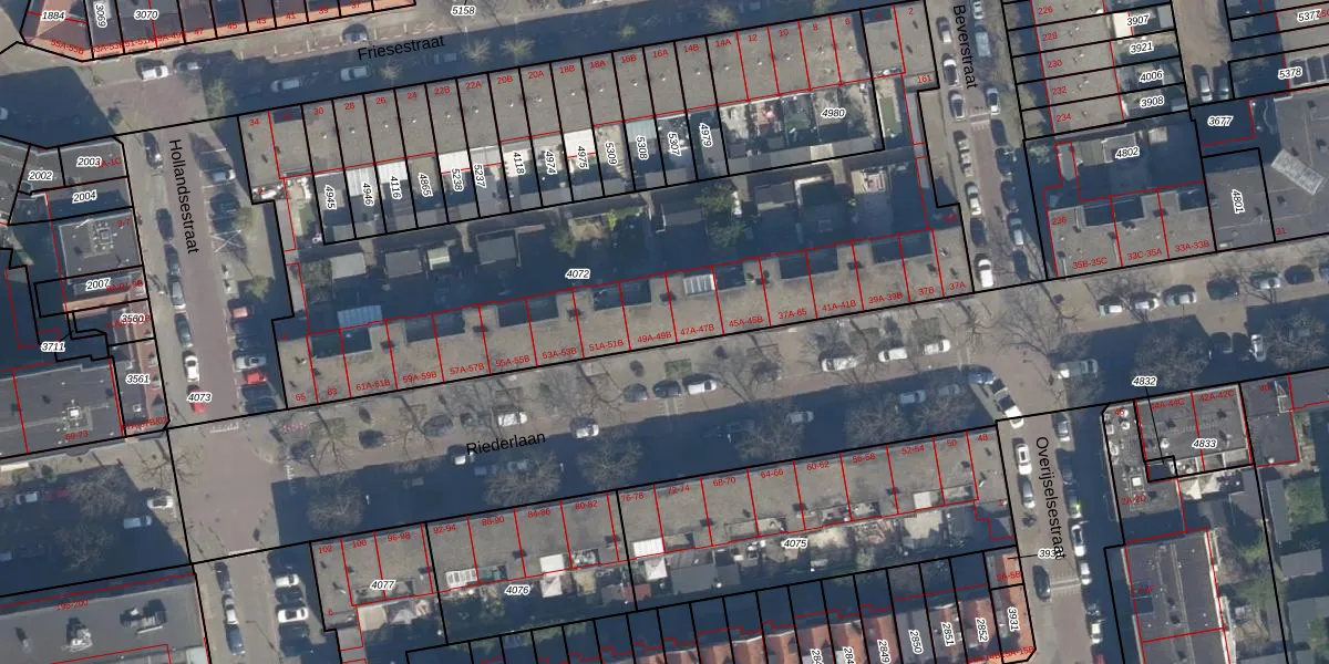 Riederlaan 49-A is gelegen op kadastraal perceel RTD05V4072. Deze kadastrale aanduiding is uniek en wordt gebruikt door het Kadaster om eigendomsrechten en andere zakelijke rechten vast te leggen. Het perceel maakt onderdeel uit van de kadastrale gemeente Rotterdam.
