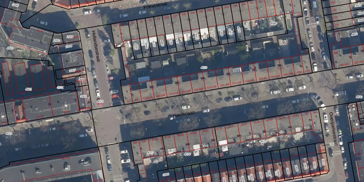 Riederlaan 55-B is gelegen op kadastraal perceel RTD05V4072. Deze kadastrale aanduiding is uniek en wordt gebruikt door het Kadaster om eigendomsrechten en andere zakelijke rechten vast te leggen. Het perceel maakt onderdeel uit van de kadastrale gemeente Rotterdam.