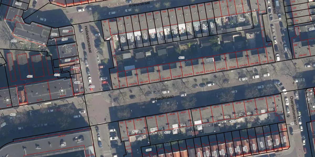 Riederlaan 57-A is gelegen op kadastraal perceel RTD05V4072. Deze kadastrale aanduiding is uniek en wordt gebruikt door het Kadaster om eigendomsrechten en andere zakelijke rechten vast te leggen. Het perceel maakt onderdeel uit van de kadastrale gemeente Rotterdam.