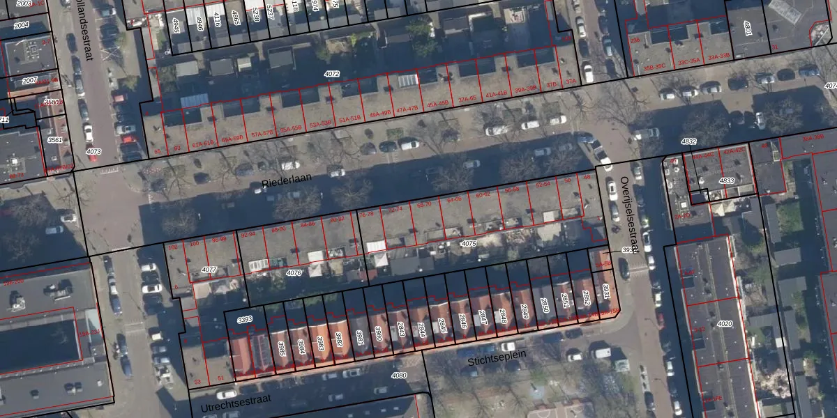Het perceel waarop Riederlaan 70 staat heeft een oppervlakte van 1072 m². Dit is een zeer groot perceel. De perceeloppervlakte wordt geregistreerd door het Kadaster. Gedetailleerde informatie over de maten van dit perceel kunt u vinden in het rapport Kadastrale kaart met maatvoering van Riederlaan 70.
