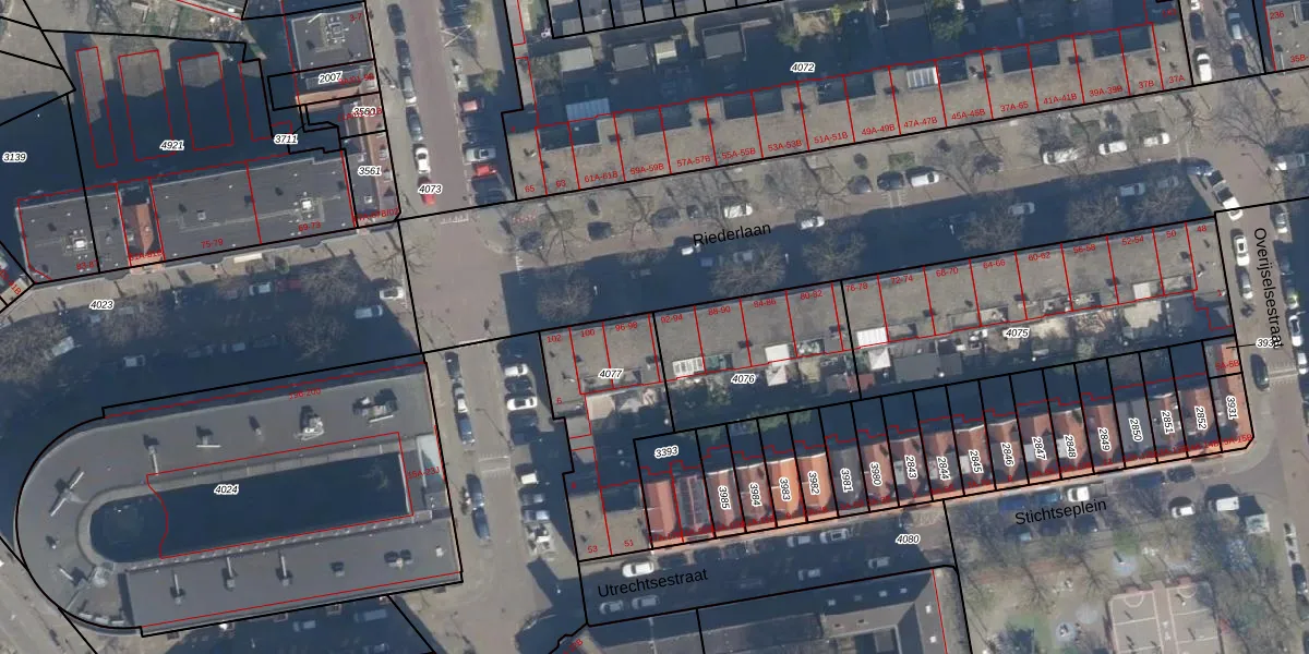 Riederlaan 94 is gelegen op kadastraal perceel RTD05V4077. Deze kadastrale aanduiding is uniek en wordt gebruikt door het Kadaster om eigendomsrechten en andere zakelijke rechten vast te leggen. Het perceel maakt onderdeel uit van de kadastrale gemeente Rotterdam.