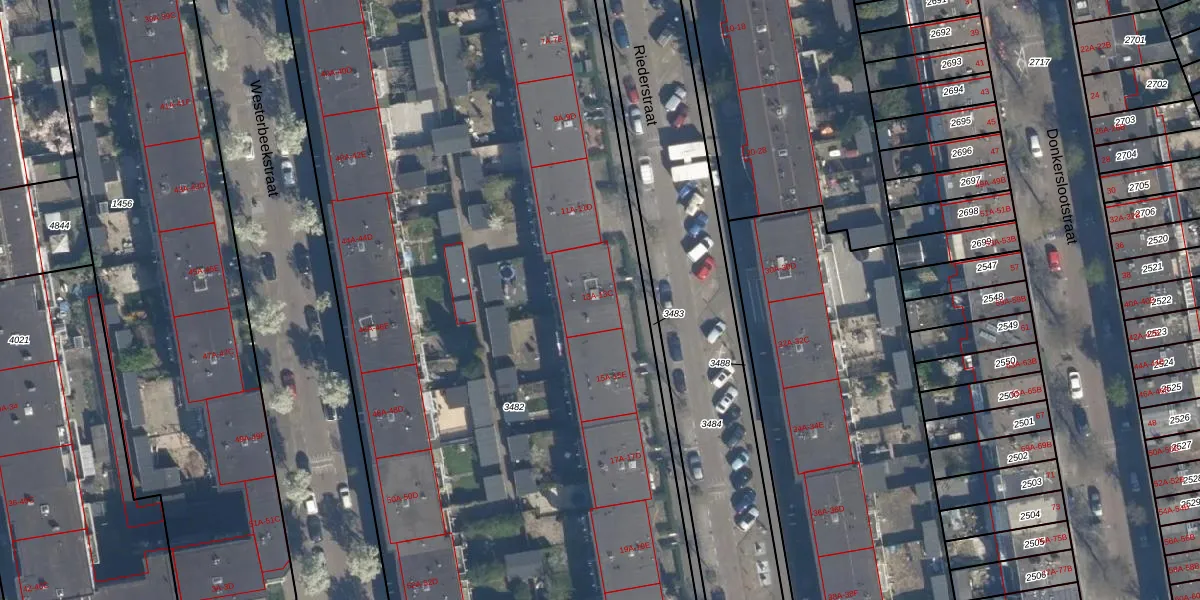 Riederstraat 13-C is gelegen op kadastraal perceel RTD05V3482. Deze kadastrale aanduiding is uniek en wordt gebruikt door het Kadaster om eigendomsrechten en andere zakelijke rechten vast te leggen. Het perceel maakt onderdeel uit van de kadastrale gemeente Rotterdam.