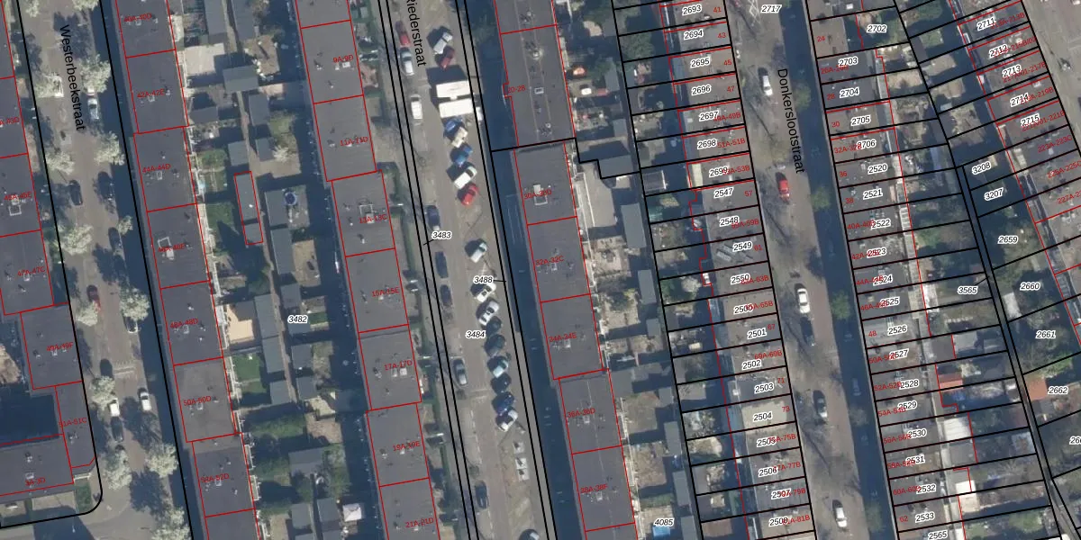 Het adres ligt op het perceel RTD05-V-4085, dat zich in de kadastrale gemeente Rotterdam bevindt. Het perceel is met 3136 m² relatief groot. Het gemiddelde ligt in de kadastrale gemeente Rotterdam op 1401,79 m². De grootste perceeloppervlakte in de kadastrale gemeente is 36,8 ha. De kleinste oppervlakte bedraagt 0 m². Er zijn 35 adressen aanwezig op het perceel. De huidige grenzen van het perceel zijn digitaal in de Basisregistratie Kadaster (BRK) geregistreerd op 26-03-2003.