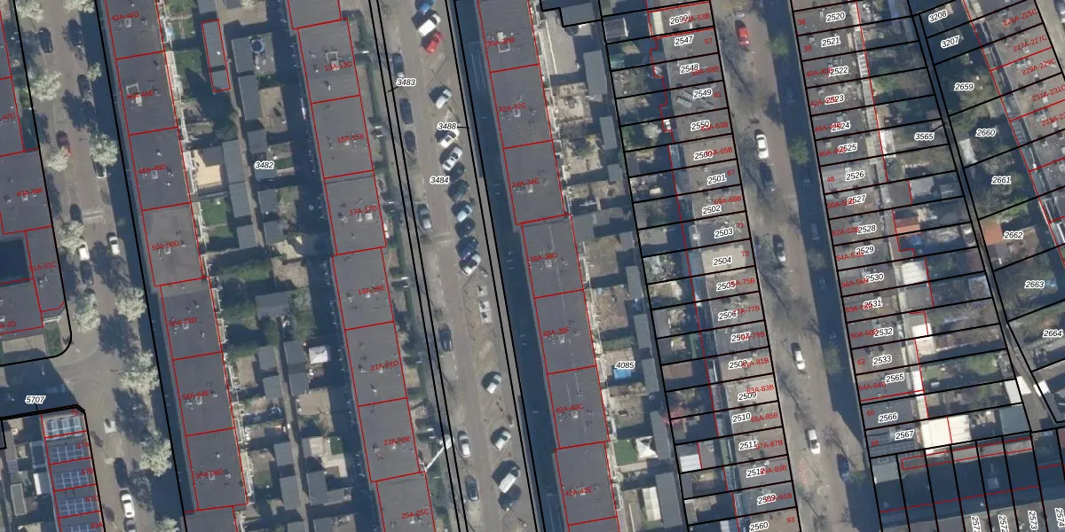 Het adres ligt op het perceel RTD05-V-4085, dat zich in de kadastrale gemeente Rotterdam bevindt. Het perceel is met 3136 m² relatief groot. Het gemiddelde ligt in de kadastrale gemeente Rotterdam op 1401,79 m². De grootste perceeloppervlakte in de kadastrale gemeente is 36,8 ha. De kleinste oppervlakte bedraagt 0 m². Op het perceel zijn 35 adressen aanwezig. De huidige grenzen van het perceel zijn digitaal in de Basisregistratie Kadaster (BRK) geregistreerd op 26-03-2003.