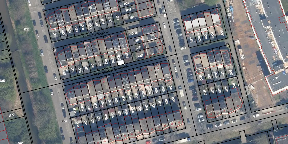 Riet Schoolenbergpad 8 is gelegen op kadastraal perceel KLG00L1574. Deze kadastrale aanduiding is uniek en wordt gebruikt door het Kadaster om eigendomsrechten en andere zakelijke rechten vast te leggen. Het perceel maakt onderdeel uit van de kadastrale gemeente Kralingen.