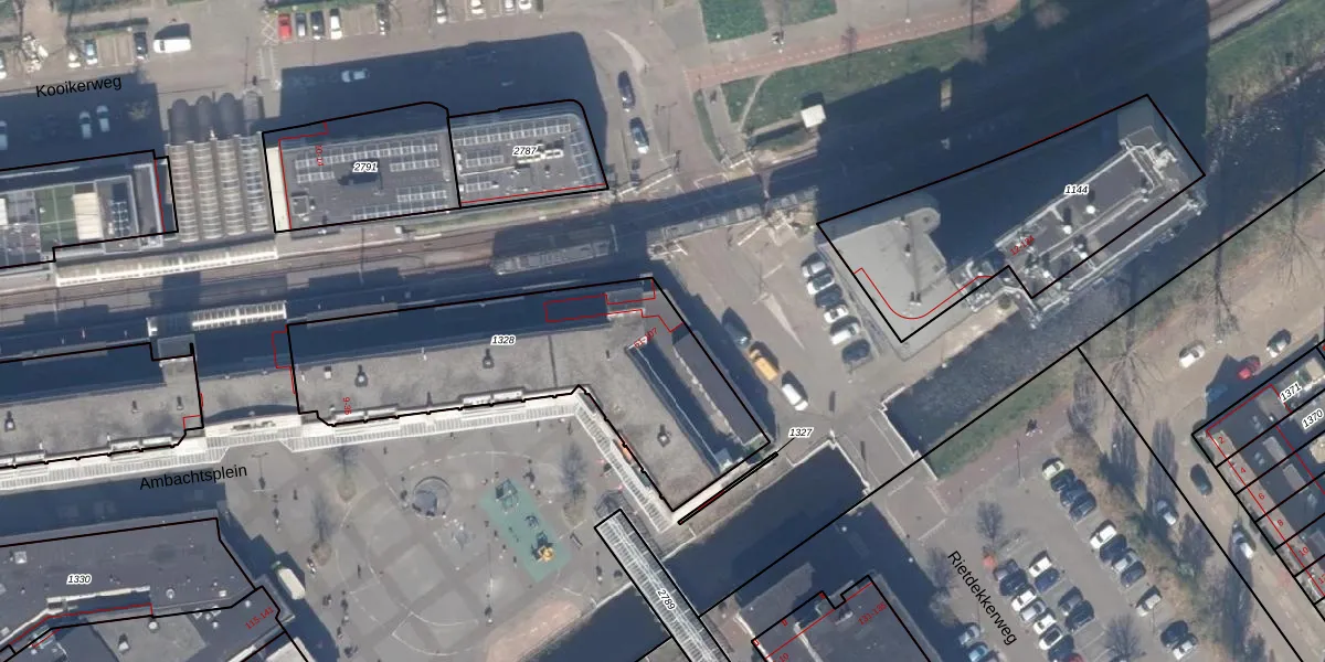Het perceel waarop Rietdekkerweg 97 staat heeft een oppervlakte van 1250 m². Dit is een zeer groot perceel. De perceeloppervlakte wordt geregistreerd door het Kadaster. Gedetailleerde informatie over de maten van dit perceel kunt u vinden in het rapport Kadastrale kaart met maatvoering van Rietdekkerweg 97.