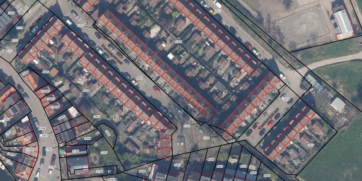 Het perceel waarop Rietstapstraat 23 staat heeft een oppervlakte van 5591 m². Dit is een zeer groot perceel. De perceeloppervlakte wordt geregistreerd door het Kadaster. Gedetailleerde informatie over de maten van dit perceel kunt u vinden in het rapport Kadastrale kaart met maatvoering van Rietstapstraat 23.