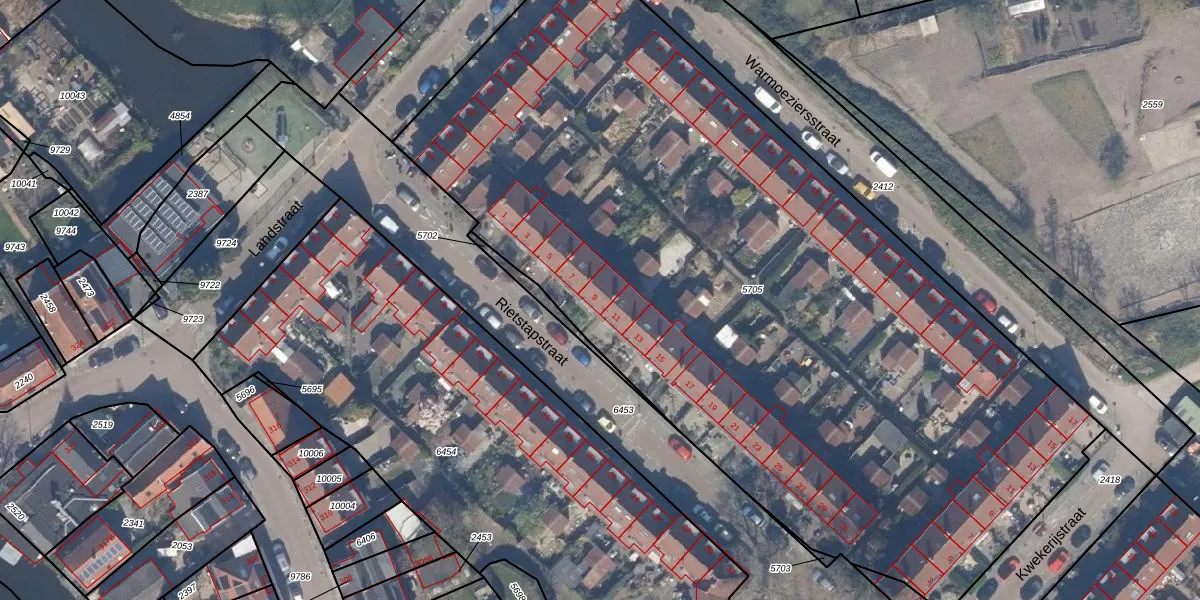 Het perceel waarop Rietstapstraat 9 staat heeft een oppervlakte van 5591 m². Dit is een zeer groot perceel. De perceeloppervlakte wordt geregistreerd door het Kadaster. Gedetailleerde informatie over de maten van dit perceel kunt u vinden in het rapport Kadastrale kaart met maatvoering van Rietstapstraat 9.