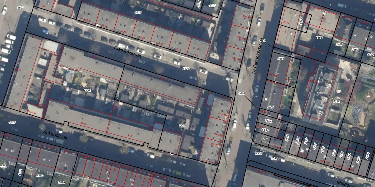 Rietvinkstraat 8 is gelegen op kadastraal perceel RTD07W5623. Deze kadastrale aanduiding is uniek en wordt gebruikt door het Kadaster om eigendomsrechten en andere zakelijke rechten vast te leggen. Het perceel maakt onderdeel uit van de kadastrale gemeente Rotterdam.