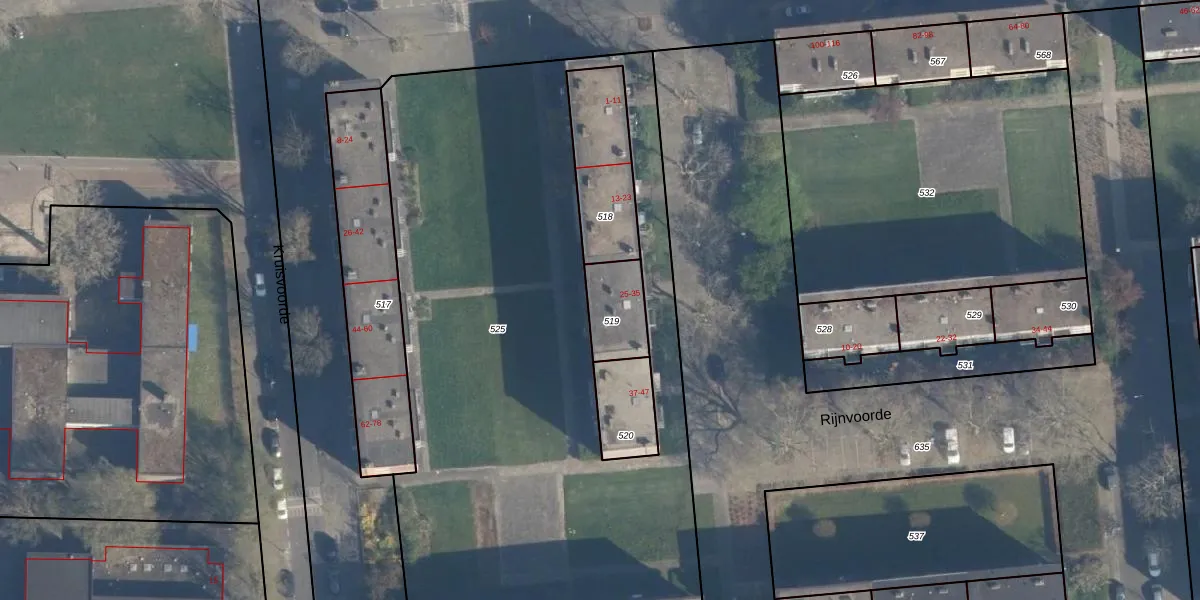 Rijnvoorde 35 is gelegen op kadastraal perceel CLS00K519. Deze kadastrale aanduiding is uniek en wordt gebruikt door het Kadaster om eigendomsrechten en andere zakelijke rechten vast te leggen. Het perceel maakt onderdeel uit van de kadastrale gemeente Charlois.