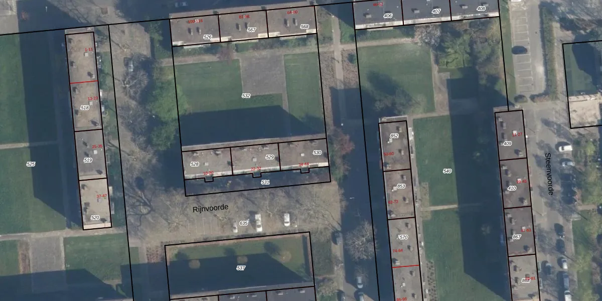 Rijnvoorde 38 is gelegen op kadastraal perceel CLS00K530. Deze kadastrale aanduiding is uniek en wordt gebruikt door het Kadaster om eigendomsrechten en andere zakelijke rechten vast te leggen. Het perceel maakt onderdeel uit van de kadastrale gemeente Charlois.