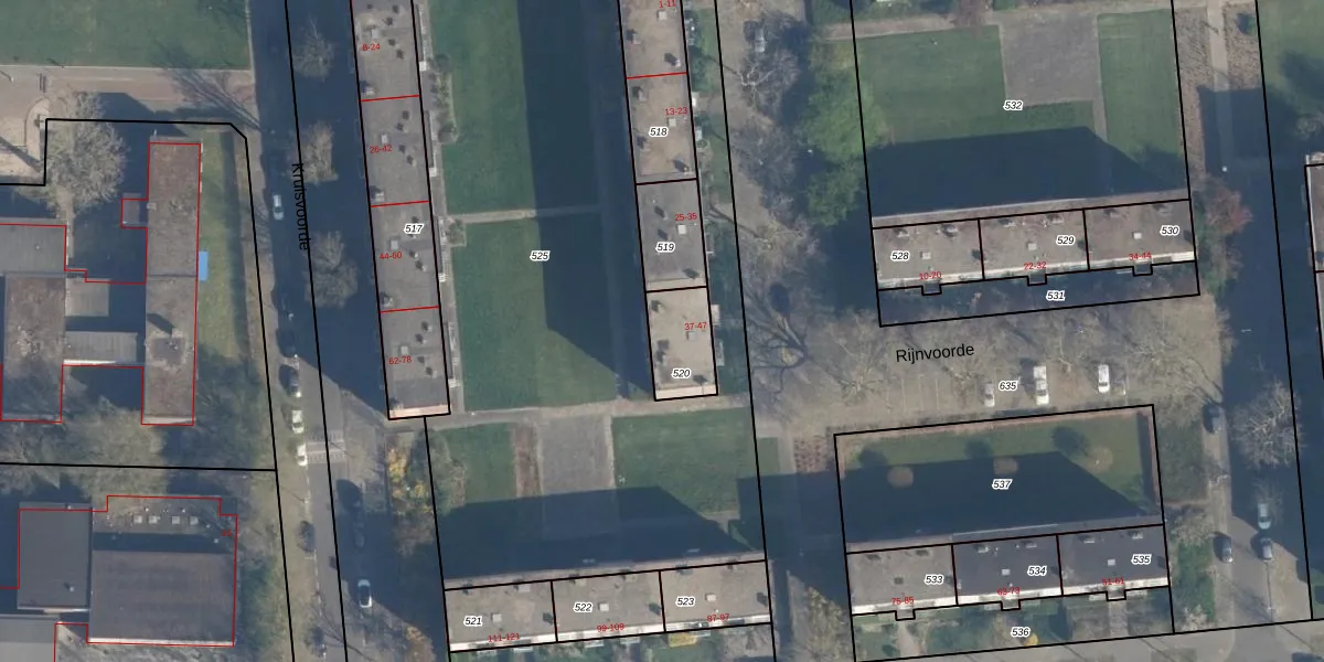 Rijnvoorde 41 is gelegen op kadastraal perceel CLS00K520. Deze kadastrale aanduiding is uniek en wordt gebruikt door het Kadaster om eigendomsrechten en andere zakelijke rechten vast te leggen. Het perceel maakt onderdeel uit van de kadastrale gemeente Charlois.