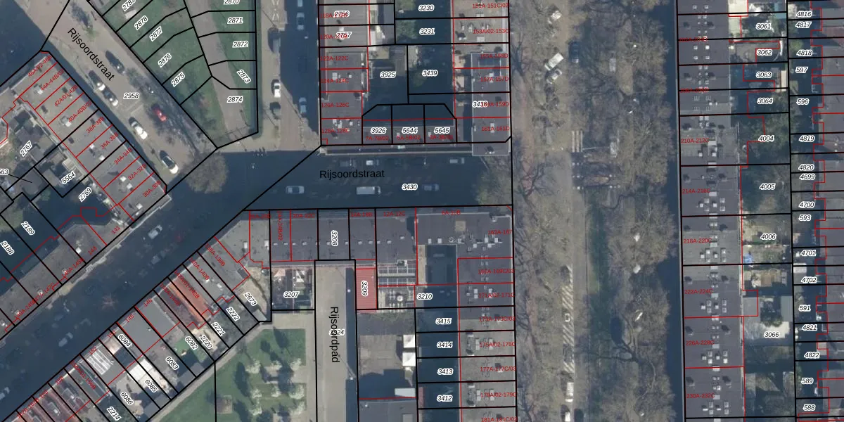 Rijsoordstraat 10-A is gelegen op kadastraal perceel CLS00G3210. Deze kadastrale aanduiding is uniek en wordt gebruikt door het Kadaster om eigendomsrechten en andere zakelijke rechten vast te leggen. Het perceel maakt onderdeel uit van de kadastrale gemeente Charlois.