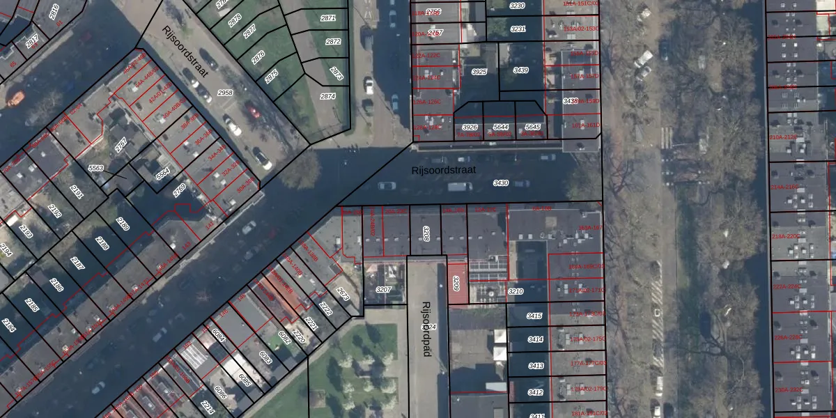 Rijsoordstraat 20-B is gelegen op kadastraal perceel CLS00G3208. Deze kadastrale aanduiding is uniek en wordt gebruikt door het Kadaster om eigendomsrechten en andere zakelijke rechten vast te leggen. Het perceel maakt onderdeel uit van de kadastrale gemeente Charlois.
