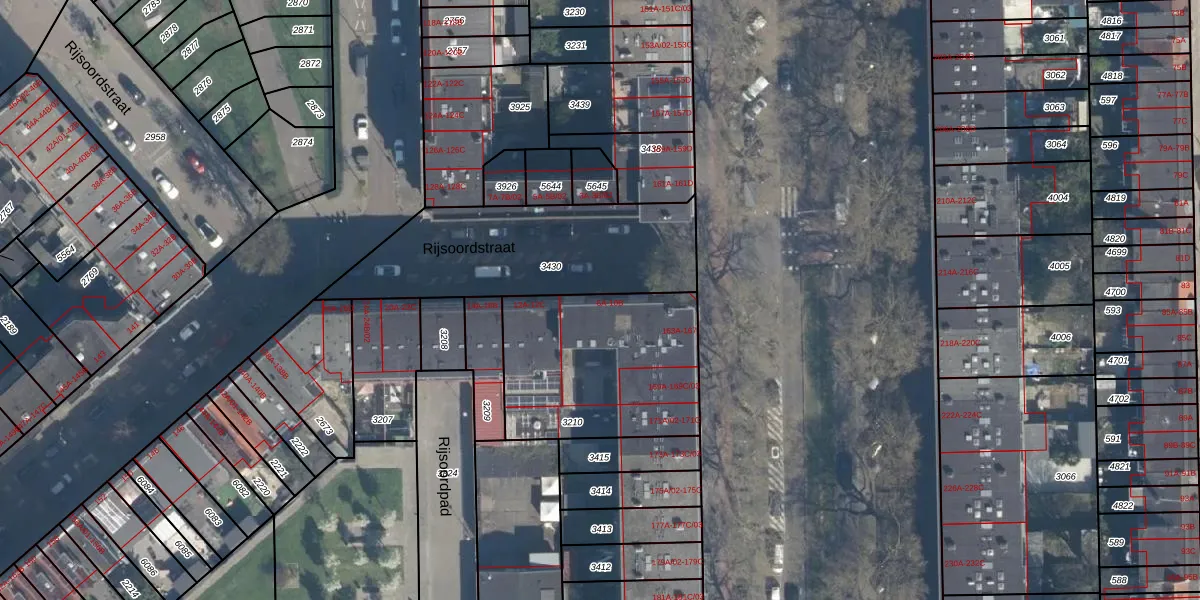 Rijsoordstraat 8-A-02 is gelegen op kadastraal perceel CLS00G3210. Deze kadastrale aanduiding is uniek en wordt gebruikt door het Kadaster om eigendomsrechten en andere zakelijke rechten vast te leggen. Het perceel maakt onderdeel uit van de kadastrale gemeente Charlois.