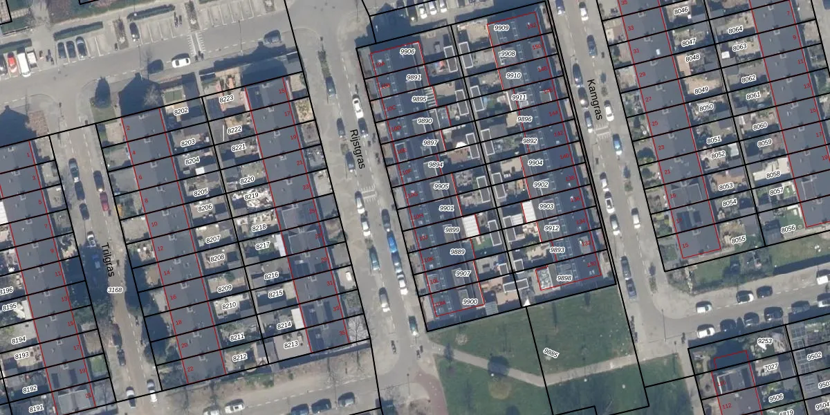 Rijstgras 10-H is gelegen op kadastraal perceel HLG03B9901. Deze kadastrale aanduiding is uniek en wordt gebruikt door het Kadaster om eigendomsrechten en andere zakelijke rechten vast te leggen. Het perceel maakt onderdeel uit van de kadastrale gemeente Hillegersberg.