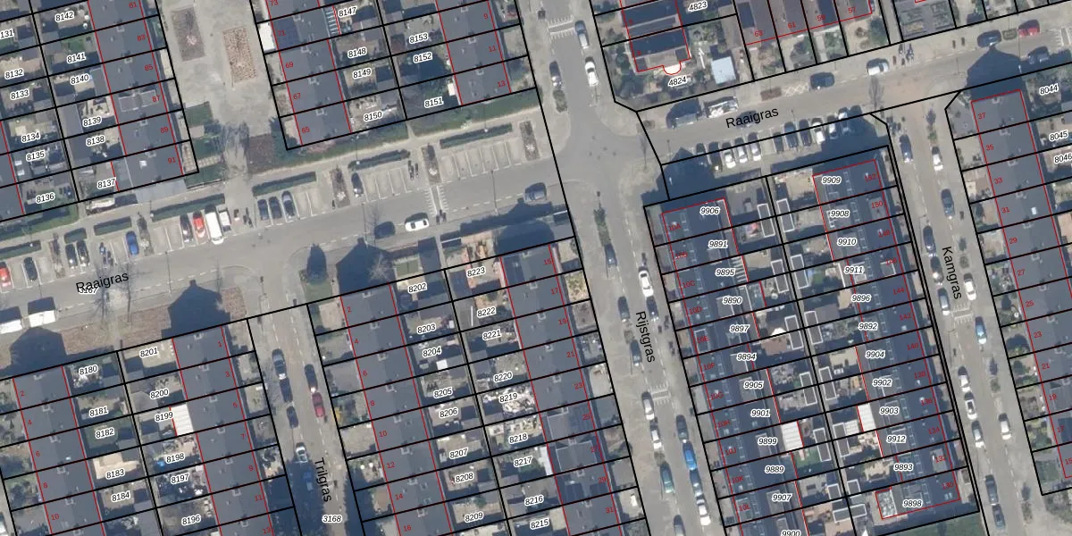 Het perceel waarop Rijstgras 15 staat heeft een oppervlakte van 155 m². Dit is een middelgroot perceel. De perceeloppervlakte wordt geregistreerd door het Kadaster. Gedetailleerde informatie over de maten van dit perceel kunt u vinden in het rapport Kadastrale kaart met maatvoering van Rijstgras 15.