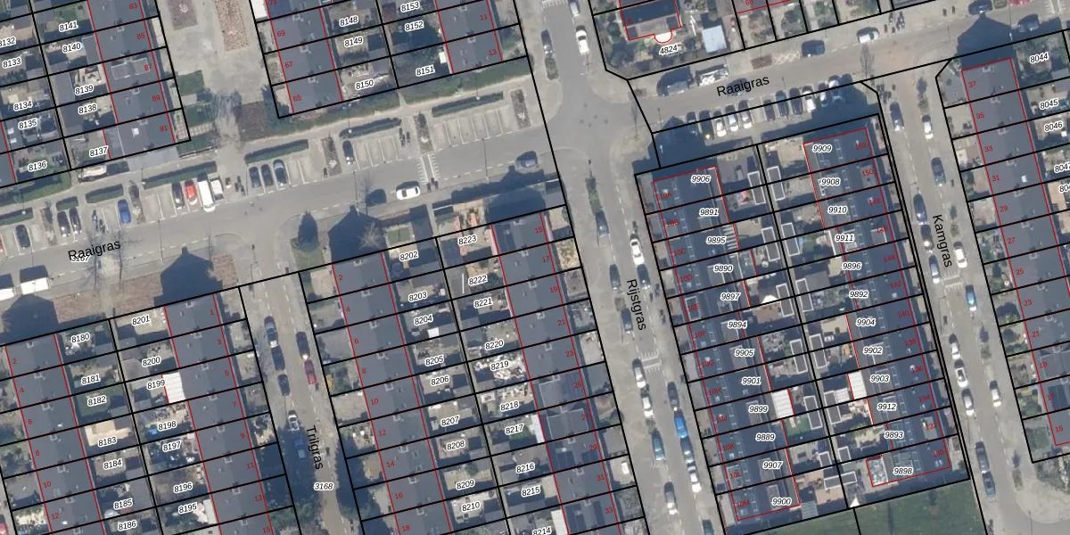 Het perceel waarop Rijstgras 17 staat heeft een oppervlakte van 150 m². Dit is een middelgroot perceel. De perceeloppervlakte wordt geregistreerd door het Kadaster. Gedetailleerde informatie over de maten van dit perceel kunt u vinden in het rapport Kadastrale kaart met maatvoering van Rijstgras 17.