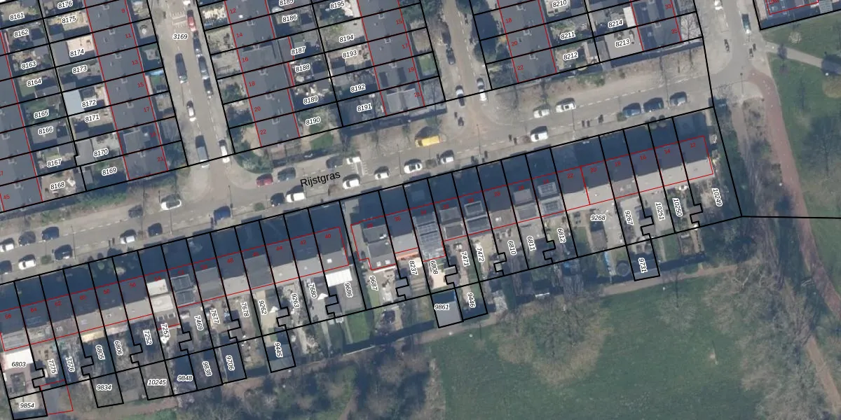 Rijstgras 34 is gelegen op kadastraal perceel HLG03B6808. Deze kadastrale aanduiding is uniek en wordt gebruikt door het Kadaster om eigendomsrechten en andere zakelijke rechten vast te leggen. Het perceel maakt onderdeel uit van de kadastrale gemeente Hillegersberg.