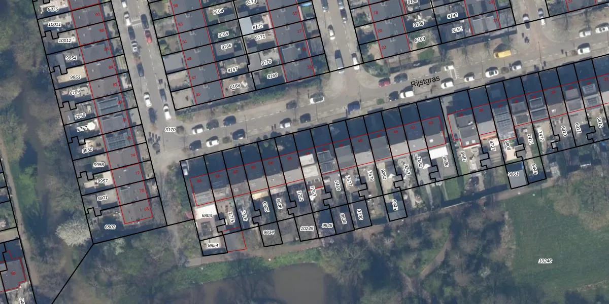 Het perceel waarop Rijstgras 54 staat heeft een oppervlakte van 163 m². Dit is een middelgroot perceel. De perceeloppervlakte wordt geregistreerd door het Kadaster. Gedetailleerde informatie over de maten van dit perceel kunt u vinden in het rapport Kadastrale kaart met maatvoering van Rijstgras 54.