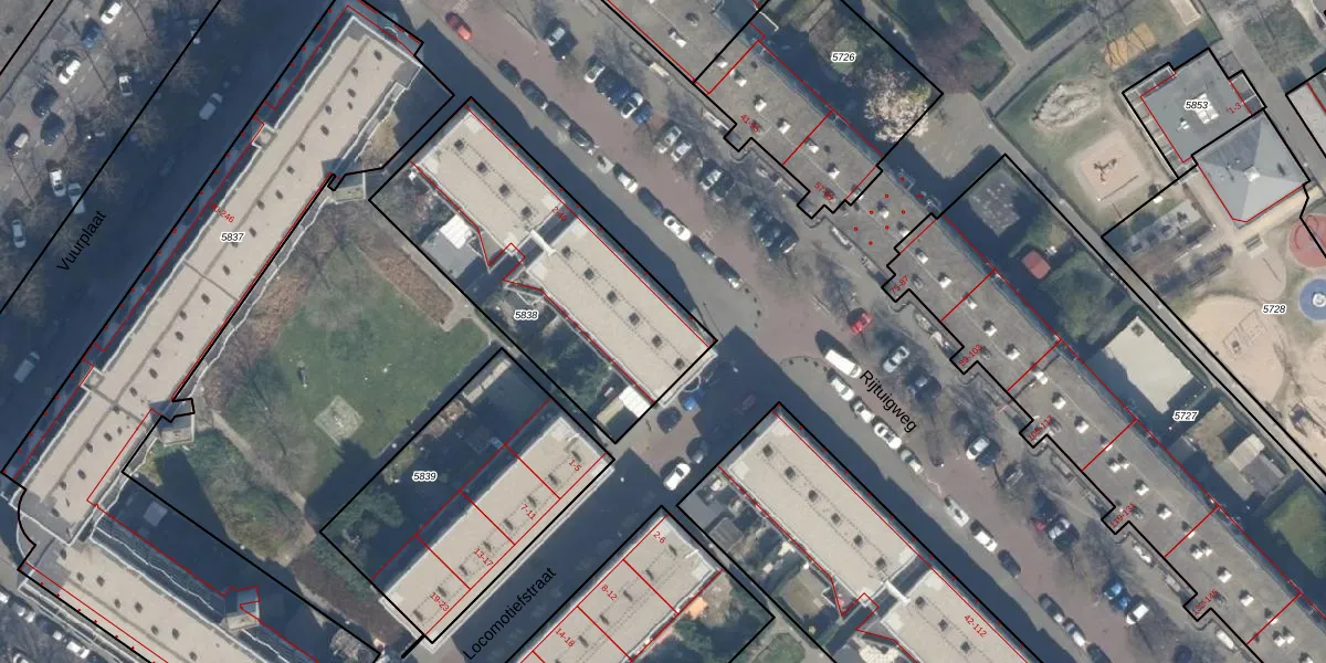 Rijtuigweg 38 is gelegen op kadastraal perceel RTD05Q5838. Deze kadastrale aanduiding is uniek en wordt gebruikt door het Kadaster om eigendomsrechten en andere zakelijke rechten vast te leggen. Het perceel maakt onderdeel uit van de kadastrale gemeente Rotterdam.