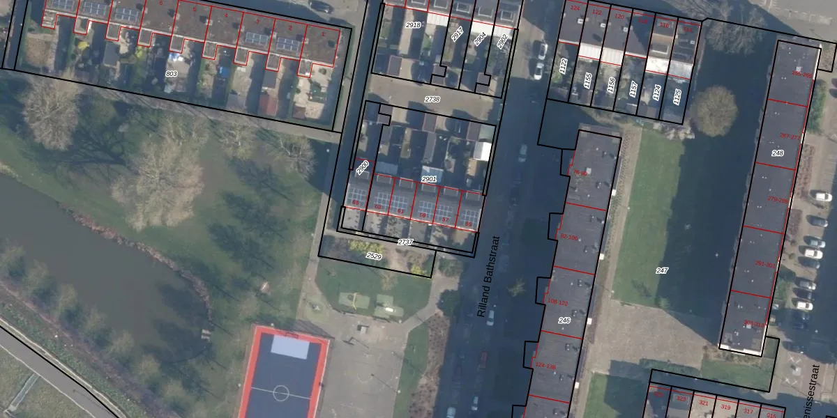 Rilland Bathstraat 59 is gelegen op kadastraal perceel CLS00L2901. Deze kadastrale aanduiding is uniek en wordt gebruikt door het Kadaster om eigendomsrechten en andere zakelijke rechten vast te leggen. Het perceel maakt onderdeel uit van de kadastrale gemeente Charlois.
