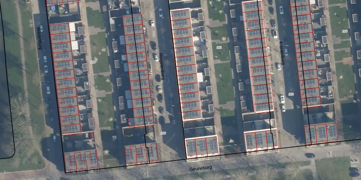 Het perceel waarop Ringelenburg 20 staat heeft een oppervlakte van 5263 m². Dit is een zeer groot perceel. De perceeloppervlakte wordt geregistreerd door het Kadaster. Gedetailleerde informatie over de maten van dit perceel kunt u vinden in het rapport Kadastrale kaart met maatvoering van Ringelenburg 20.