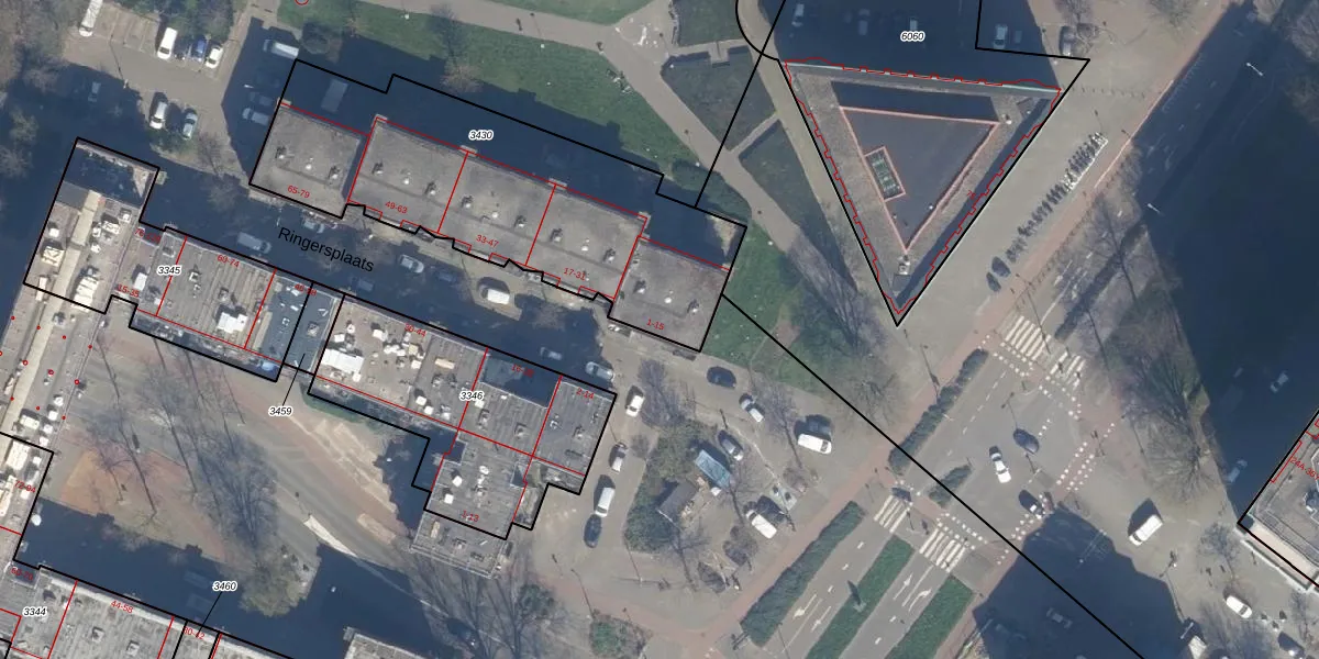 Ringersplaats 15 is gelegen op kadastraal perceel KLG00F3430. Deze kadastrale aanduiding is uniek en wordt gebruikt door het Kadaster om eigendomsrechten en andere zakelijke rechten vast te leggen. Het perceel maakt onderdeel uit van de kadastrale gemeente Kralingen.