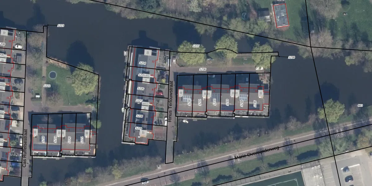 Rinus Terlouwstraat 1 is gelegen op kadastraal perceel HLG03I1230. Deze kadastrale aanduiding is uniek en wordt gebruikt door het Kadaster om eigendomsrechten en andere zakelijke rechten vast te leggen. Het perceel maakt onderdeel uit van de kadastrale gemeente Hillegersberg.