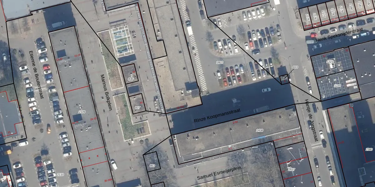 Rinze Koopmansstraat 15-EN is gelegen op kadastraal perceel KLG00K834. Deze kadastrale aanduiding is uniek en wordt gebruikt door het Kadaster om eigendomsrechten en andere zakelijke rechten vast te leggen. Het perceel maakt onderdeel uit van de kadastrale gemeente Kralingen.
