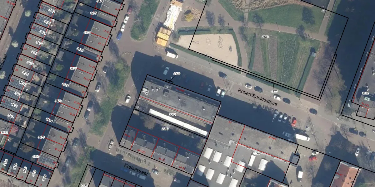 Robert Baeldestraat 156-A is gelegen op kadastraal perceel KLG00F3201. Deze kadastrale aanduiding is uniek en wordt gebruikt door het Kadaster om eigendomsrechten en andere zakelijke rechten vast te leggen. Het perceel maakt onderdeel uit van de kadastrale gemeente Kralingen.