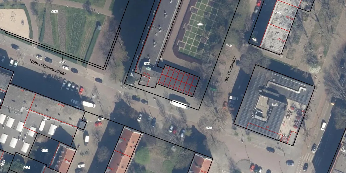 Robert Baeldestraat 65 is gelegen op kadastraal perceel KLG00F3152. Deze kadastrale aanduiding is uniek en wordt gebruikt door het Kadaster om eigendomsrechten en andere zakelijke rechten vast te leggen. Het perceel maakt onderdeel uit van de kadastrale gemeente Kralingen.