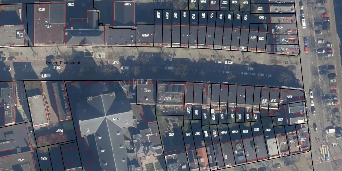 Het perceel waarop Robert Fruinstraat 26-F staat heeft een oppervlakte van 329 m². Dit is een groot perceel. De perceeloppervlakte wordt geregistreerd door het Kadaster. Gedetailleerde informatie over de maten van dit perceel kunt u vinden in het rapport Kadastrale kaart met maatvoering van Robert Fruinstraat 26-F.