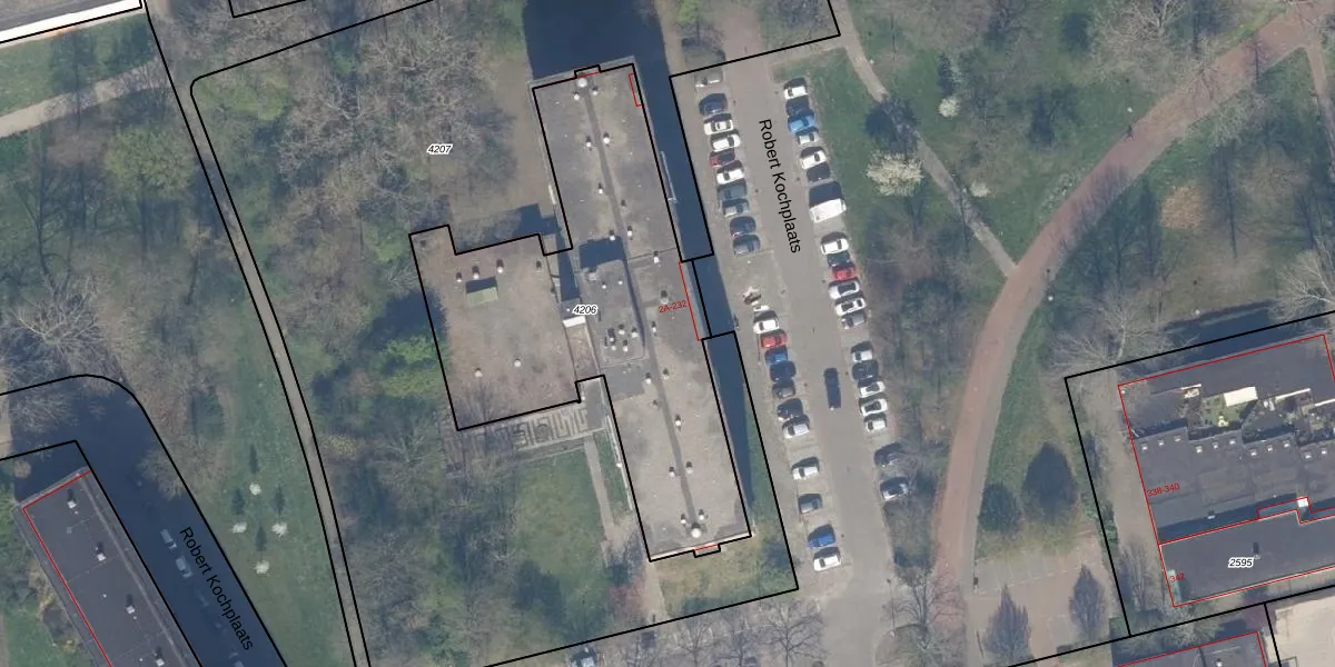 Het perceel waarop Robert Kochplaats 2-E staat heeft een oppervlakte van 1743 m². Dit is een zeer groot perceel. De perceeloppervlakte wordt geregistreerd door het Kadaster. Gedetailleerde informatie over de maten van dit perceel kunt u vinden in het rapport Kadastrale kaart met maatvoering van Robert Kochplaats 2-E.