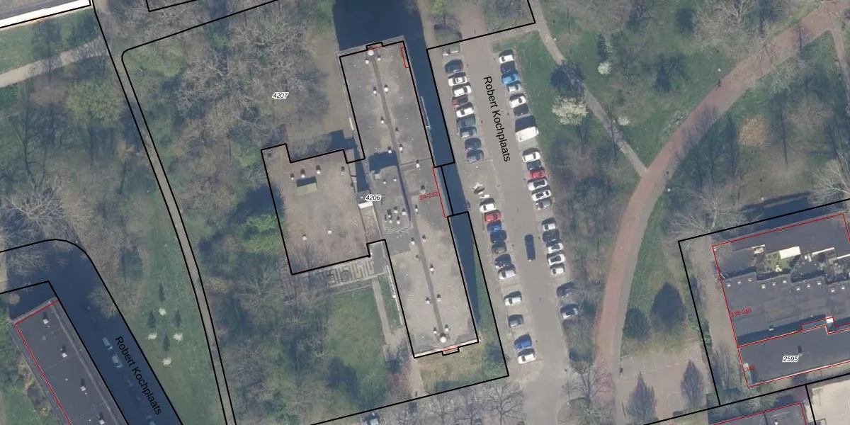Het perceel waarop Robert Kochplaats 6-H staat heeft een oppervlakte van 1743 m². Dit is een zeer groot perceel. De perceeloppervlakte wordt geregistreerd door het Kadaster. Gedetailleerde informatie over de maten van dit perceel kunt u vinden in het rapport Kadastrale kaart met maatvoering van Robert Kochplaats 6-H.