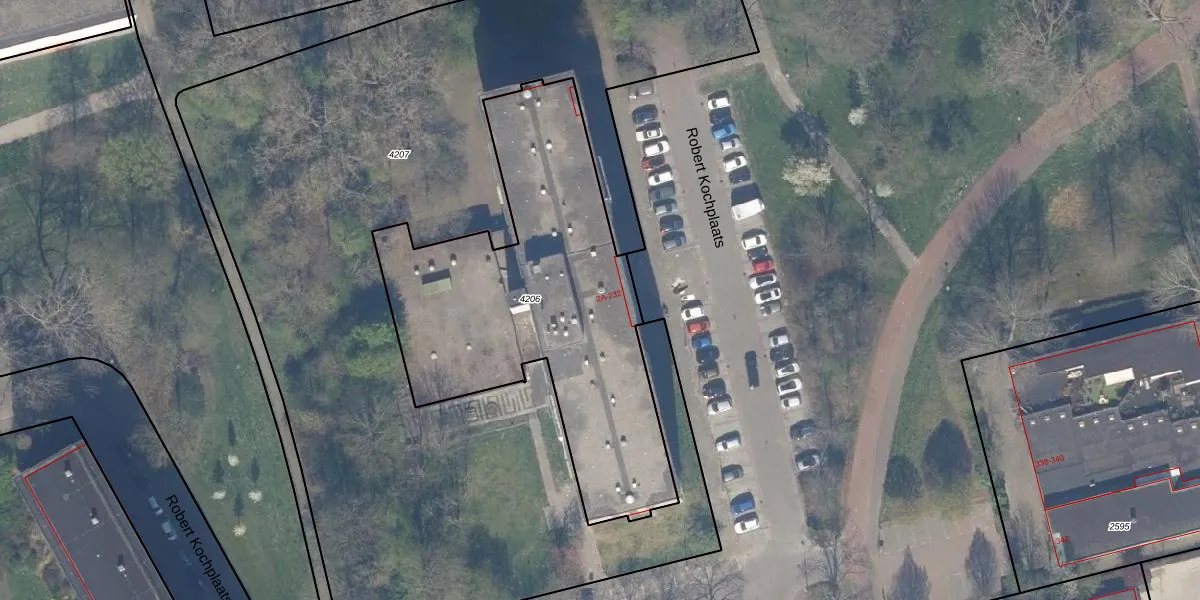 Het perceel waarop Robert Kochplaats 66 staat heeft een oppervlakte van 1743 m². Dit is een zeer groot perceel. De perceeloppervlakte wordt geregistreerd door het Kadaster. Gedetailleerde informatie over de maten van dit perceel kunt u vinden in het rapport Kadastrale kaart met maatvoering van Robert Kochplaats 66.